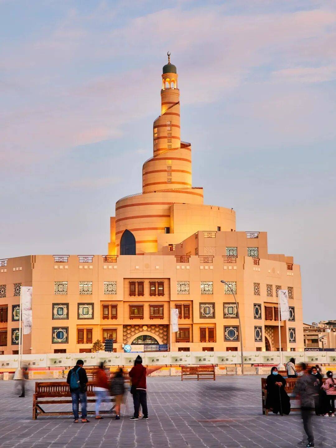【国家博物馆】(入内)卡塔尔国家博物馆由荣获普利兹克奖的建筑师让·努维尔 (Jean Nouvel) 设计,从当地自然形成的结晶——沙漠玫瑰石,汲取灵感并对其作出重新诠释。卡塔尔国家博 物馆围绕阿卜杜拉·本·贾西姆·阿勒萨尼酋长 (Sheikh Abdullah bin Jassim Al-Thani) 之前的宫殿而建, 曾作为政府机构达 25 年之久,不仅展示了卡塔尔的历史足迹,同时也致敬未来。博物馆占地面积多达39,994平方米。