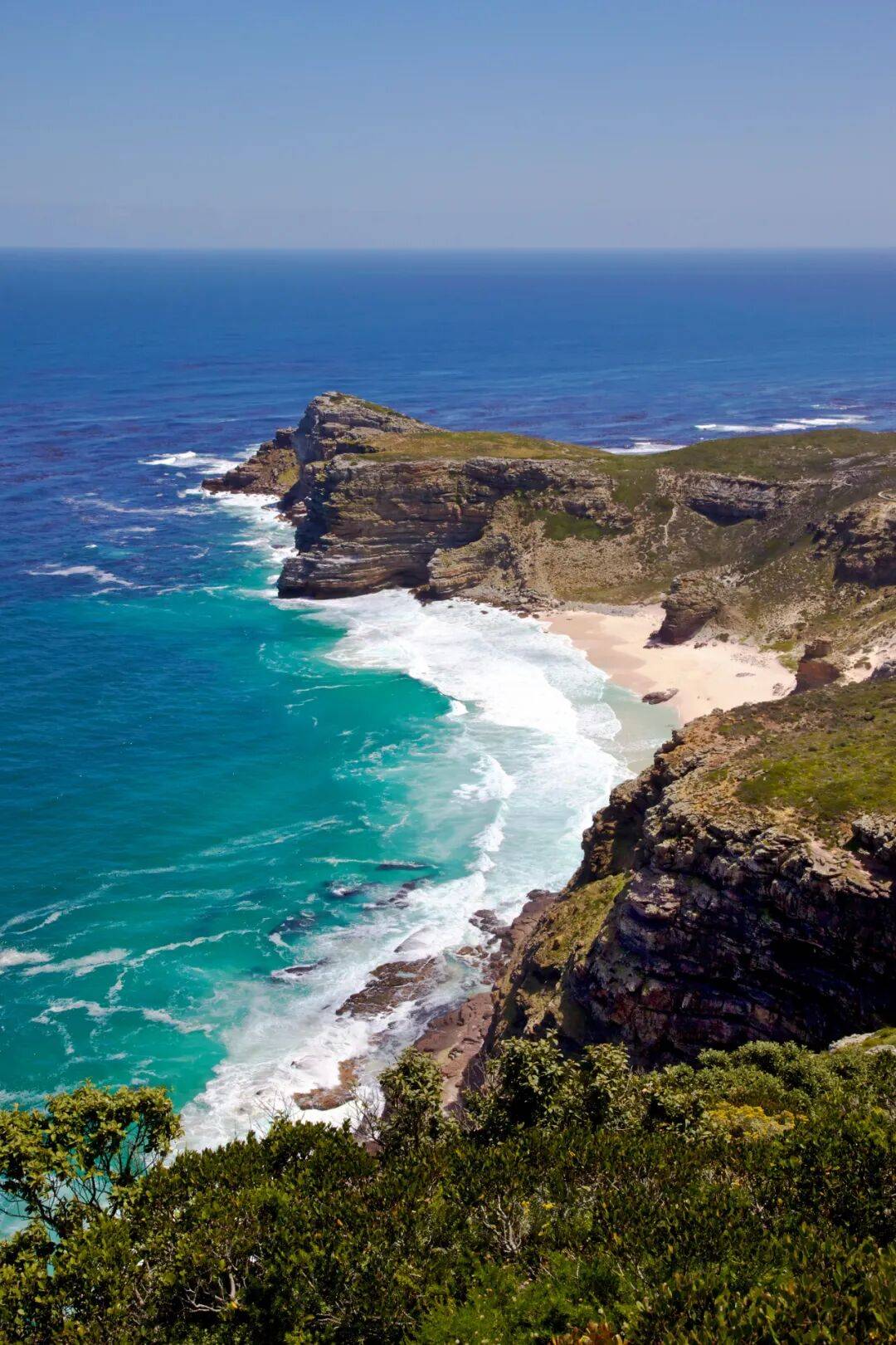 随后前往非洲大陆最南端的天之涯、海之角好望角自然保护区(入内参观约 1 个半小时);这里依然保持着原始风貌,游人可乘坐缆车登上 238 米高的开普角山顶(单程上山缆车),纵览大西洋,印度洋交汇处,水天一色,烟波浩渺;离开好望角前往灯塔,在灯塔上可以眺望不远处的好望角,开阔的视野,呼吸着新鲜的空气,这种情景让人格外心情舒畅。