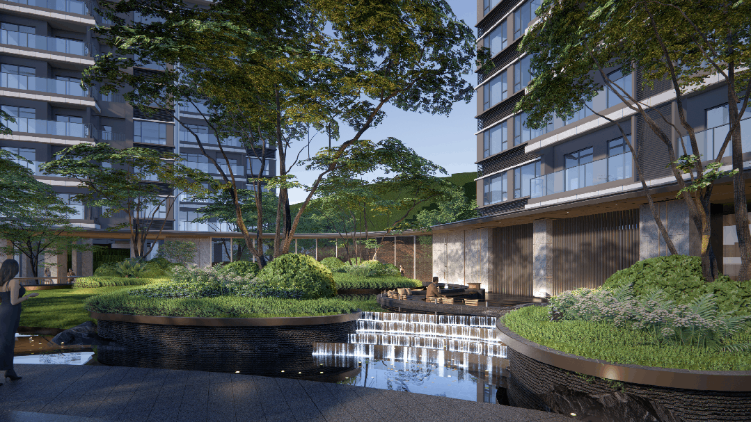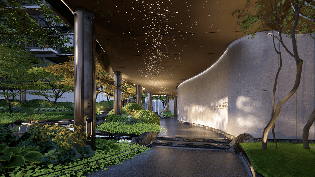 自然景观是另一个加分项。项目背靠大山乸森林公园(占地近946万平方米,在建中),西侧紧邻凤凰湖系列湖泊,包括3号湖凤举湖、5号湖凤林湖、6号湖凤采湖,推窗就能看到湖景和山体。社区内部做了约1.8万平方米的下沉式双层园林,高差近5米的水景、半天云瀑布、庭院式山水景观都搬了进来。归家动线米宽的生命树迎宾大门开始,经过下沉园林、儿童乐园、登山庭院等功能分区,每一步都试图给业主带来情绪价值。很多看房者形容这里像“生长在公园里的房子”,入则宁静,出则繁华。