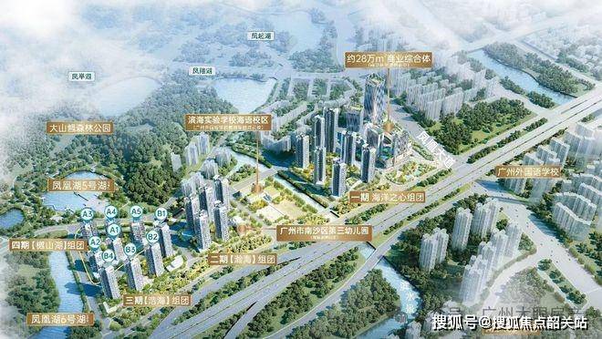 南沙花语上城(备案名花语麓园)是目前南沙区府板块备受关注的住宅项目,由中国铁建操盘开发,定位为区域内的高端改善型产品。整个社区紧邻海语熙岸系列,属于坦尾村旧改地块中的压轴之作,整体规划体量约12.6万平方米,总户数控制在600户左右,容积率3.14,绿化率25%,属于相对克制的低密度布局。