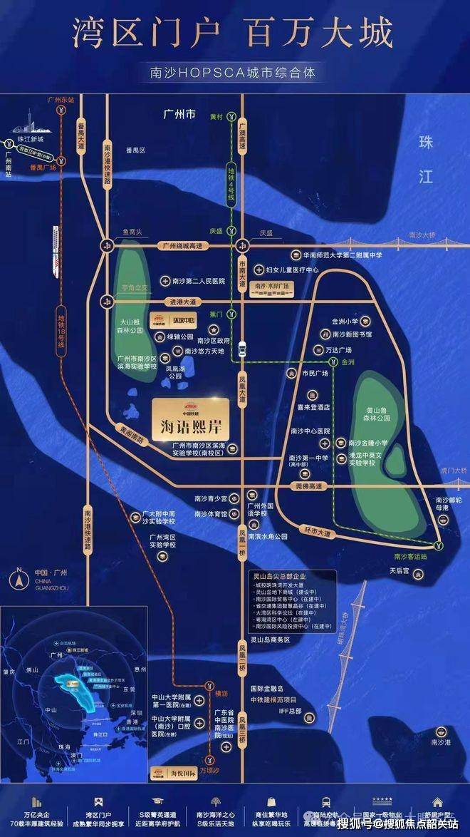 位置上,花语上城坐在南沙发展中轴凤凰大道的黄金节点。北接庆盛,南连明珠湾,东望南沙湾,西通黄阁,属于典型的“左牵繁华、右牵未来”。凤凰大道串起了蕉门、明珠湾、南沙枢纽、万顷沙等南沙未来几年的重磅板块,沿线政务中心、凤凰广场A塔(南沙目前最高写字楼)、多个重点项目都在这条轴上。开车5分钟可接驳蕉门地铁站,10分钟左右到横沥站,虽然不是地铁口物业,但日常通勤接驳不算太吃力。未来如果广州地铁15号线规划落地,环宇城东南侧有望设站,区域的轨道交通能级还会再上一个台阶。