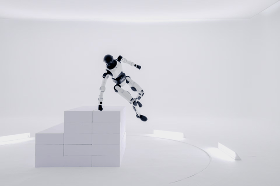 熊友军:一方面,它的运动能力和灵巧性更加出色。我们视频里展现的它跳一米高的台子,以前不具备这种能力。原来机器人展现的是家里的楼梯、斜坡、各种草沙丘石的通过性,现在它能适应更加复杂的场景。另一方面,它的大脑人机交互、环境感知、用户识别、意图识别、错误反思以及长程任务规划能力都有全面的提升。